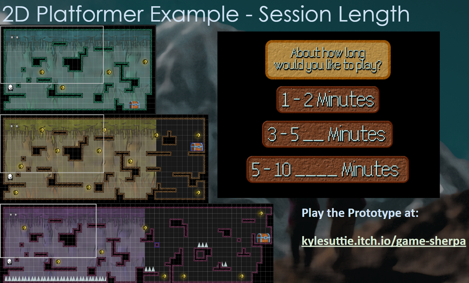 A large opportunity is being lost when players quit playing a game that they would otherwise enjoy. Most often players quit due to a game not respecting their time, a difficulty mismatch, or because they aren’t being rewarded for doing what they find fun. How can our games meet every player’s expectations when each player has unique requests? Like a Dungeon Master would curate a live group experience for the players in the room to enjoy, a Game Sherpa would adjust a game’s parameters to match a player’s specific expectations and requirements for each time they play to always find their fun.